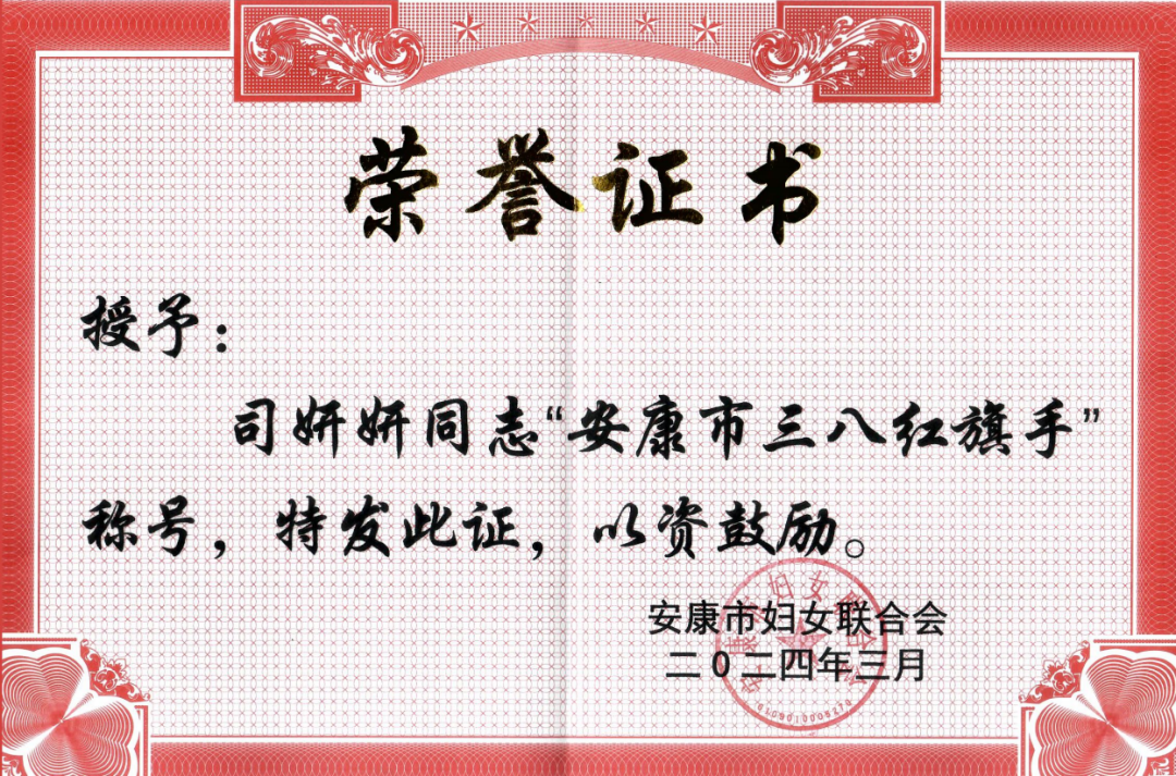 荣获“安康市三八红旗手”称号!