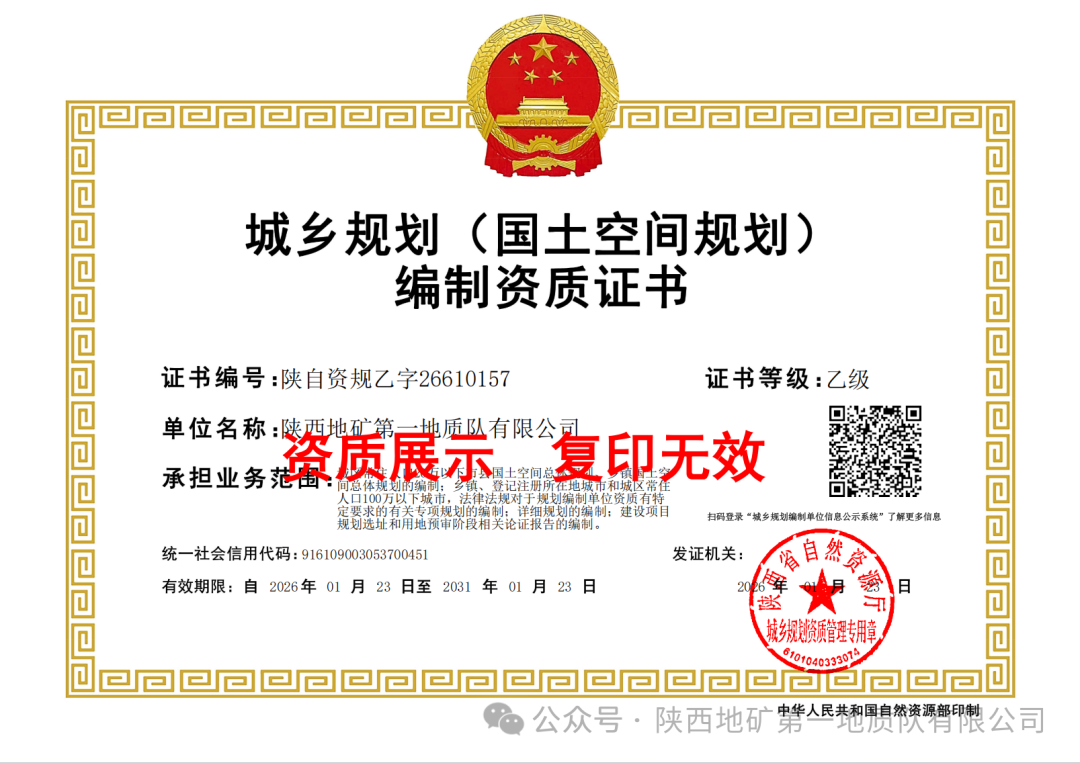 喜讯!陕西地矿一队获城乡规划编制乙级资质发表时间:2026-01-26 21:11 1月23日,经陕西省自然资源厅审核批准,陕西地矿一队国土勘测规划设计研究院(以下简称国勘院)成功取得城乡规划(国土空间规划)编制乙级资质证书。此项资质的获得,标志着我队在城乡规划领域的专业能力、技术水平与管理规范获行业权威认可,是业务发展的重要里程碑。 ![]() 城乡规划编制资质是开展相关工作的法定准入条件,申报过程中,公司领导高度重视,各部门紧密协作、高效推进,严格对标资质标准完善材料,最终顺利通过各级审核。 作为深耕土地整治、国土空间规划、地质测绘等领域多年的专业单位,近年来,陕西地矿一队国勘院先后高质量完成了《紫阳县蒿坪镇、双安镇和汉王镇城乡建设用地增减挂钩项目》《宁陕县城关镇、金川镇小川村等6个村实用性村庄规划》《镇坪县钟宝镇得胜村和新坪村实用性村庄规划》《紫阳县双安镇白马村和三元村实用性村庄规划》等一系列重点项目。在多年实践中,该院始终以科技创新驱动服务升级,通过应用有人机机载激光雷达技术、三维激光扫描、高精度GNSS接收机等先进技术手段,构建起空天地一体化的高效数据采集与处理能力,以持续的技术革新为项目的精准规划与科学决策提供坚实支撑。凭借严谨的技术作风、扎实的数据基础和优质的服务成效,该院在行业内树立了良好口碑。 此次资质获批,不仅提升了我队在市场中的核心竞争力,更拓宽了业务服务范围,为承接城乡规划相关项目、响应乡村振兴与城乡融合发展战略搭建了专业平台。 下一步,陕西地矿一队国勘院将以此次资质获批为契机,深耕城乡规划领域,持续强化专业能力建设,以优质的规划服务助力地方城乡高质量发展。 |
